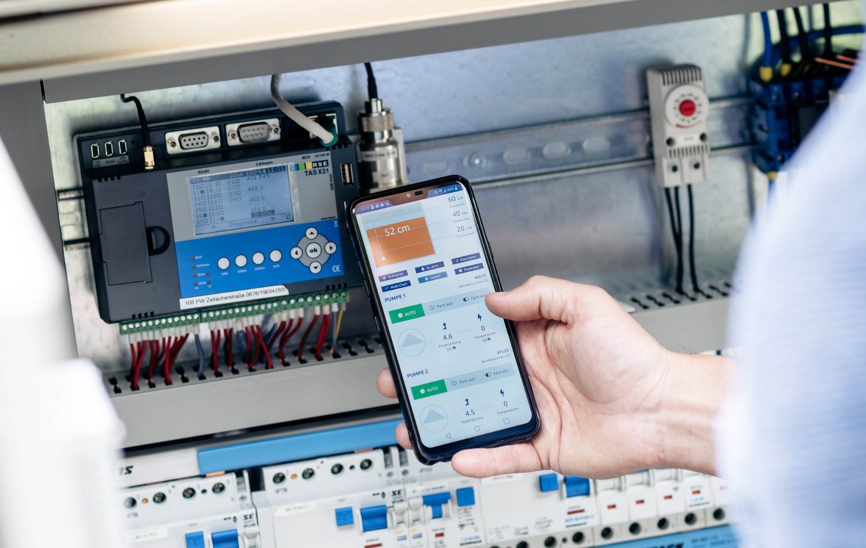 - Umfassende Pumpwerksfunktionen (Pumpensteuerung, Notbetrieb, Betriebsschalter, Pumpenwechsel, Kanalnetz- und Zuflussüberwachung)