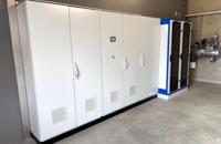 - Energieverteilungsschaltschränke mit Ladereglern und Wechselrichtern sowie Batterieschränke