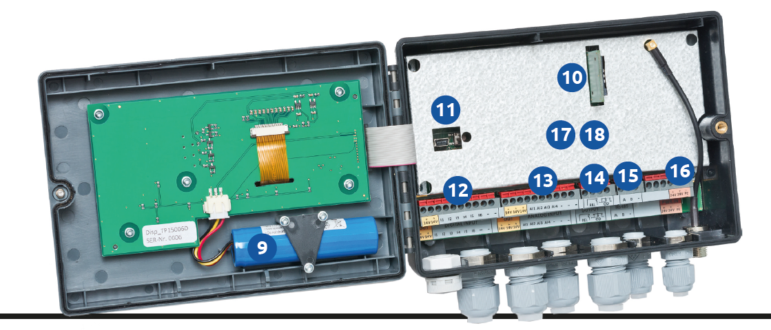 | 6 | Schraubbare Kabeldurchführungen (IP65) |